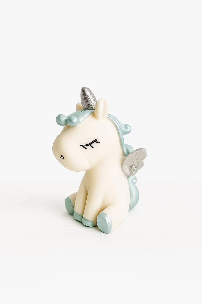 Декор фигурка из глазури "Единорог" серебро - голубой для торта